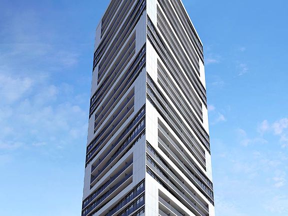 Alter is a bold new take on modern condominium livingdesigned to be seen and experienced. Soaring 33 storeys high, this striking Tridel-built residence features distinct angular architecture and sleek expanses of white and grey glass, creating a visually dynamic presence. Designed by architectsAlliance, its signature alternating recessed balconies make an unforgettable impression on the streetscape while offering residents unique views of the city.