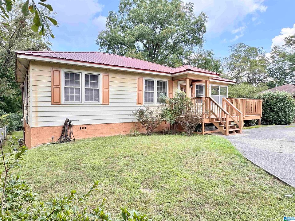 Welcome home! This newly renovated 3-bedroom, 2-bath home is located on a beautifully treed, extra large lot with a circular driveway, metal roof, and low-maintenance aluminum siding. Inside, the living room and bedrooms showcase beautifully restored hardwood floors, while both renovated bathrooms feature modern smart mirrors. The kitchen showcases gorgeous black granite countertops set against crisp white cabinets.The large covered back deck is perfect for relaxing or entertaining. A brand-new dedicated laundry room adds convenience, and the walk-in basement/garage provides tons of storage. With multiple upgrades throughout, this home blends charm and modern comfort. Ideally located within walking distance of the weekly farmer’s market at the high school football stadium, this property combines small-town convenience with everyday comfort.