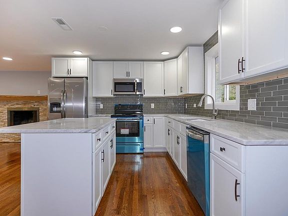 Gorgeous remodeled home with beautiful Granite Countertops, Custom Cabinets, Tiled backsplash, stainless steel appliances, new plumbing, new electrical ,all new appliances,new roof, new kitchen, remodeled bathrooms with porcelain, stone, ceramic and glass tile, added new master bedroom, new flooring in kitchen, refinished hardwoods, Living room and upstairs bedrooms, new water heater, new furnace, new painted exterior. Fully carpeted basement , could be used as a playroom or family room. Master bedroom has a brick fireplace and new carpeted flooring. Fully insulated. Living room has a stone fireplace for those cold new england winter nights. Also has an attached garage. Walkout access from the master to the backyard . This home will not last long!