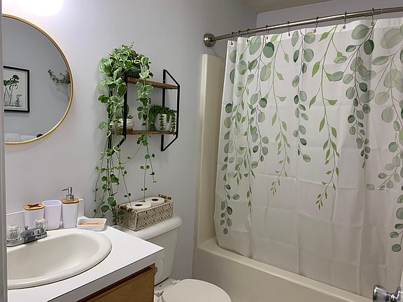 This quaint apartment comes fully furnished. The bedroom has a queen sized bed and chest of drawers as well as closet space. The living room has a futon, pull out chair, coffee table and TV. The dining nook has 4 barstools and the outside patio has a table and 4 chairs. There are 2 driveway parking spaces. WiFi and garbage removal included in rent.