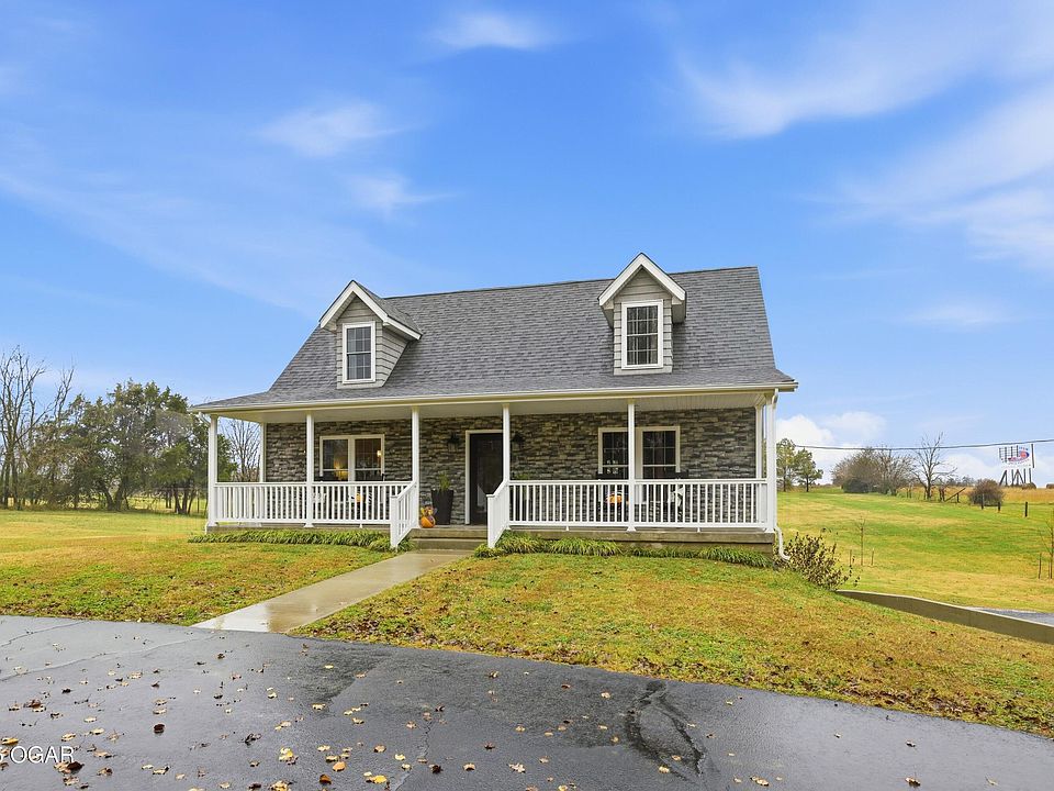 Outdoor living shines here: enjoy the full-length covered front porch, ideal for relaxing and visiting, or step onto the full-length covered back deck overlooking your pristine 7.5 acres. Peaceful views and country living surround you, with easy access to I-49 for north or southbound travel needs.