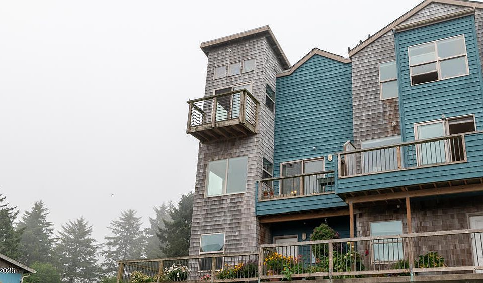 Discover coastal living at its best in this three-story condo overlooking the Pacific Ocean and the dramatic cliffs of Pirate's Cove that you can enjoy from the two private decks. Approved for short-term rentals, this home offers flexibility as a vacation getaway, investment property, or full-time residence. This home features 3 bedrooms and 3.5 bathrooms, which includes two primary suites. The layout provides ample comfort for family and guests. The second floor has a bright, open-concept living area with hardwood floors, a double-sided fireplace, and a gourmet kitchen with granite countertops. There is an attached two-car garage that adds convenience and storage. Easy location just minutes from Depoe Bay's downtown shops and restaurants for convenience.