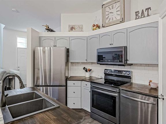 Private fenced front yardAttached garageSoaring ceilingsAmple closet spaceOpen layoutLaminate flooringFunctional kitchen