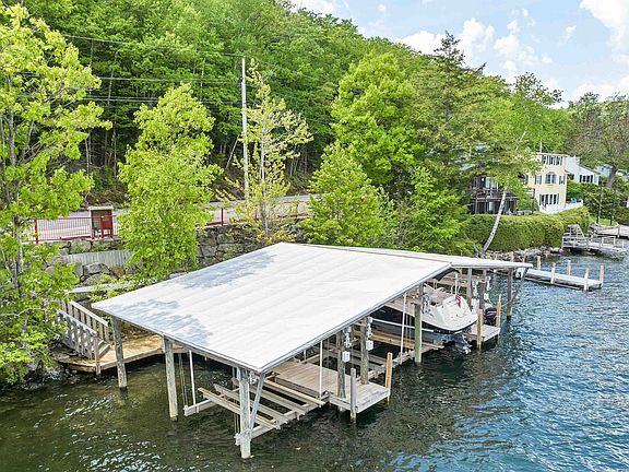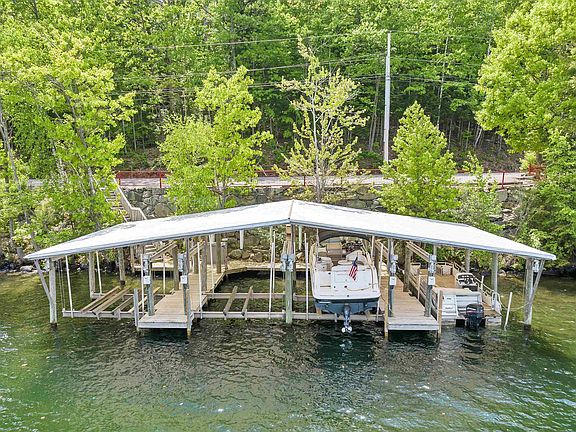 Unique opportunity: Meredith waterfront lot, 240' of frontage on Lake Winnipesaukee with large, covered docking system!! The docks can accommodate four boats, each with their own lift system. The dimensions of the boat slips are: 32' X 12'. For boaters convenience, there is water (pulled from the lake) and electricity at the waterside. Ample, private parking make it easy to get on and off the boat for the day. This location is absolutely ideal: both by water and car, accessing the Big Lake and Lakes Region actives is a breeze, being a few minutes to both downtown Meredith and Weirs Beach. This is a rare find on Winnipesaukee!