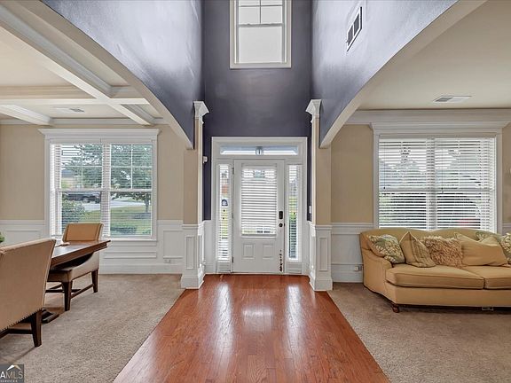 This Craftsman-style 6 bedroom, 4 1/2 bath house is a blend of timeless elegance and modern luxury, set on a sprawling 3/4-acre lot with breathtaking landscaping and numerous amenities. Upon entering, you're greeted by a spacious foyer that opens into the expansive living areas. The living room features a grand fireplace framed by built-in cabinetry and coffered ceilings that add a touch of sophistication. Rich hardwood floors run throughout the main level, complementing the home's warm color palette. The large kitchen is a chef's dream, equipped with stainless steel appliances, custom cabinetry, granite countertops, and a center island with seating. Adjacent to the kitchen is a formal dining room perfect for hosting dinner parties. The six bedrooms are generously sized, each offering ample closet space with one bedroom on the main level. The master suite is a luxurious retreat, featuring a vaulted ceiling, private sitting area, and a spa-like en-suite bathroom with a soaking tub, a separate walk-in shower, and dual vanities. The additional bathrooms are equally well appointed, with modern fixtures and high-end finishes. The outdoor space is truly a paradise, offering resort-like amenities not to mention the underground sprinkler system, two swimming pools, clubhouse and a tennis court. Wheat Field Reserves is a total electric community. Minutes from downtown Lawrenceville, The Shops at Webb Gin, and Scenic Hwy. This Craftsman-style home is a perfect blend of classic design and modern amenities, offering luxurious living in a serene and spacious environment