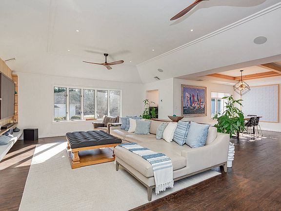 Amazing, fun-filled home just moments from the heart of East Hampton Village, offering effortless access to shopping, dining, and pristine ocean beaches. Designed for relaxed summer living and easy entertaining, the home features an open floor plan that naturally brings everyone together. The spacious living room flows seamlessly into a screened-in porch, creating a breezy indoor-outdoor living experience. Outfitted with heat lamps for cooler evenings, a dining area, and plush, lounge seating, the porch is ideal for morning coffee, afternoon cocktails, and long, laughter-filled nights. The main level includes three inviting, well-appointed bedrooms, while the lower level adds a fourth bedroom and an exceptional bonus living space designed for both fun and relaxation. This level features a stylish bar setup, a well-equipped gym, dart board competition area, pool table, and a cozy media lounge with movie-night-ready seating, plus a full bath-making it a true retreat for guests of all ages. Added conveniences include two separate laundry rooms, making extended stays effortless. Outdoors, the heated saltwater pool becomes the centerpiece of summer days and moonlit evening swims. The primary suite is further enhanced by a private hot tub just outside the bedroom, offering a serene escape for relaxing evenings under the stars. Arriving in time for summer fun is a golf simulator, another great feature for all ages. For those seeking a truly special summer setup, the property may also be enjoyed as a private compound by combining this rental with the neighboring home. Together, the two residences offer a total of 8 bedrooms, 6 full bathrooms, and an additional half bath-an exceptional and rare opportunity for an unforgettable East Hampton summer.