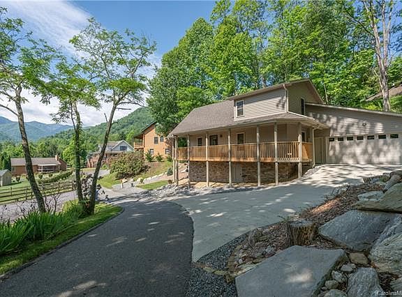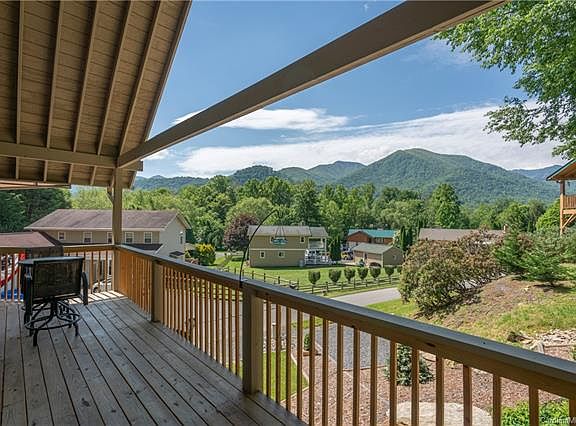 Contemporary, A-Frame located in Maggie Valley! Easy, year-round paved access & incredible views with no mountain drive! A rare opportunity to own a home in Maggie Valley that you can walk to restaurants & shops. Built in 2018 the home is like new! Almost $40,000 in upgrades since the home was built. The home features an open floor plan, stone wood-burning fireplace, breakfast bar, vaulted ceilings, main level bed & bath, & laundry on the main. The upper level includes a loft for office or extra sleeping area and bed/bath. Vaulted ceilings create a very spacious feel & plenty of glass to take in the mountain views. Attached 2 car garage with extra storage area & concrete drive. The grounds were professionally landscaped. Every detail has been addressed right down to the crushed rock in the crawlspace. Great outdoor space includes wrap-around, covered deck. Close to skiing, the Blue Ridge Parkway, & 20 minutes to Cherokee.
