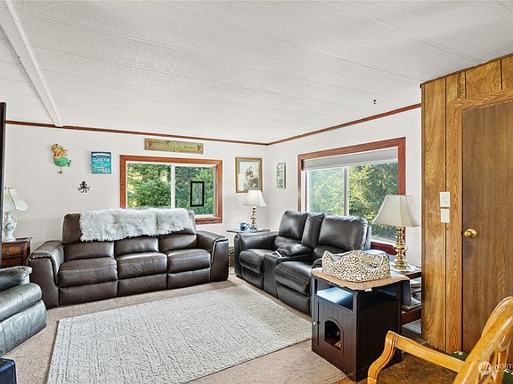 Breath-taking views await! Perfectly nestled on a dead-end gravel driveway, this secluded property features a Northwest facing 2 bed, 1.75 bath manufactured home and a 1144 sq. ft. detached garage w/ private well and septic on 16 acres of pristine bay-front property. Additionally, the property includes a private pond, multiple outbuildings, RV parking w/ hookups, various water lines on property for irrigation/gardening, partially fenced for livestock and potential for another building site. Features of the manufactured home include covered back deck, stainless-steel appliances, main bedroom w/ .75 bathroom and pellet stove heat.