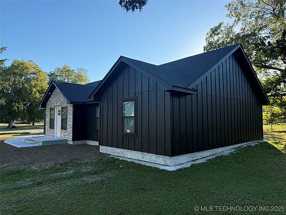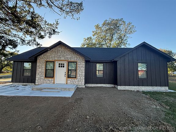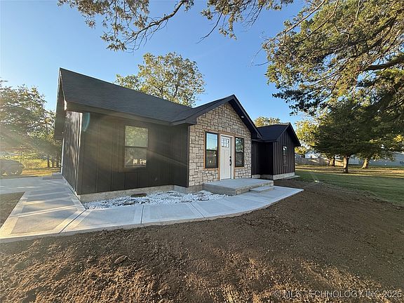 We welcome you to explore this newly constructed, open living, 3 bed 2 full bath home. Featuring a modern yet cozy ambiance, this residence boasts built-in bookshelves, with space for a tv in the middle, and a coffee bar area in the spacious kitchen with ample counter space. The primary bedroom includes a full bath and walk-in closet. Situated on a corner lot, with beautiful trees that will complement any landscaping. Conveniently located across from Krebs Public Schools and within walking distance to some of the area's best dining options.