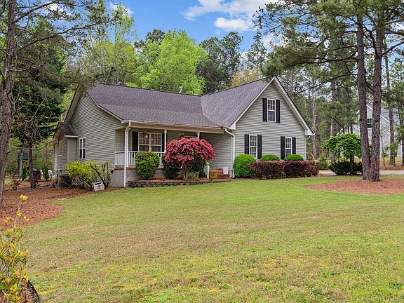Introducing a charming and beautifully landscaped 4-bedroom, 2-bathroom home nestled in the sought-after Sandhills Farm Life area, within the desirable New Century & Union Pines School district, right in Whispering Pines! Perfectly situated for an easy commute to Ft. Bragg, this delightful home boasts a bonus room that can serve as a 4th bedroom with double door closet. Enjoy the warmth of beautiful wood flooring in the living room, while the carpeted bedrooms offer a cozy ambiance. The open concept floorplan is perfect for entertaining while cooking. In-unit laundry room located right off the kitchen offers extra space for storage. All bedrooms are conveniently located on the main level, with the bonus room on the second floor. The primary suite features a spacious walk-in closet, tiled walk-in shower, double vanity, and a relaxing jacuzzi tub. This home is equipped with a smart thermostat for easy adjusting from your devices. Step outside onto the covered deck and take in the serene surroundings. With private parking and a 2-car garage, this home offers both convenience and comfort. Pets are considered, subject to a non-refundable pet fee. Welcome home to your perfect retreat!