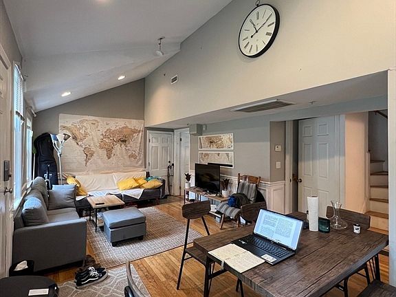 This bright and spacious 3-bedroom, 1-bath apartment offers 960 sq. ft. of comfortable living in a highly desirable Spring Hill neighborhood. The open-concept living and dining area features vaulted ceilings, large windows for natural light, and hardwood floors throughout. The kitchen is equipped with modern appliances and plenty of cabinet space, opening directly to the dining area for easy entertaining. Bedrooms are generously sized with ample closet space, including one with an oversized closet area perfect for storage or wardrobe organization. Additional highlights include central air conditioning, a shared backyard ideal for gatherings, and common laundry in the building. Located close to public transportation, shopping, highway access, public schools, universities, and T-stations. Cats allowed, no dogs. Unit level: 2. Heating: natural gas, forced air.