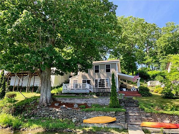 RARELY AVAILABLE LAKEFRONT HOME WITH A PRIVATE DOCK. Location, location, location! This 2 bedroom 1 bath home was completely rebuilt in 2008 and offers beautiful views of Coventry Lake. An open floor plan with large picture windows allows for ease of entertaining and takes advantage of the beautiful views. The kitchen features a large breakfast bar and quartz countertops. Hardwood floors throughout the main living space and the bedrooms. The second-floor features two large bedrooms, both with lake views, and a full bath with laundry. There is a large patio and a deck for outdoor enjoyment. The private dock makes this a true oasis. This is a great single-family home, investment, or both! You decide! Whatever your plans this is a special property.