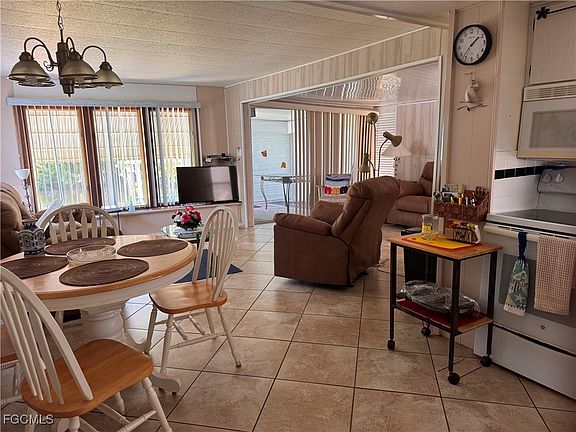 Priced to sell! Waterfront home in need of your personal touch and a bit of TLC! This turnkey one bed/one bath home has the laundry inside, remodeled walk-in shower in the bathroom, kitchen has eat-in dining space, and the living room with its tile flooring is spacious. New mini-split air conditioning in the living room and master. The home has 700 sq ft of living space and an additional 100 sq ft enclosed porch that looks right out onto the canal that flows in from the Caloosahatchee River. There is a boat dock with a lift in need of some TLC but was last known to be working. Opposite the home are serene tropical woods, ideal for retirement. Orange Harbor Mobile Home and RV Resort is a waterfront resident-owned 55+ community. The monthly maintenance fee of $406 includes water/sewer, trash, lawn care, fiber optics internet, two new pickleball courts, a heated pool and lots of other amenities in addition to a large clubhouse, two boat ramps, a community fishing pier, beautiful sunsets and more! Two pets are allowed with some dog breed restrictions, so be sure to review the rules. ESA animals are allowed. Price includes share for the lot and ownership in the community.