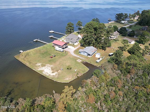 What better address to call home than Sunset Drive, with amazing sunsets over the Albemarle Sound daily! Located only 6 miles from the town of Columbia for convenience and 45 minutes to the beautiful Outer Banks! This property offers a great opportunity to downsize as a full-time residence, vacation getaway, or investment property! It's currently being used and rated as an Airbnb's Guest Favorite known as Kingfisher Point! This well-maintained home offers 2 bedrooms and 2 full baths, one being a master suite, along with an open Living Room, Dining Room and Kitchen, plus a large utility/mud room with entrance from the attached carport. Storage building conveys. Along with the exterior and interior being painted throughout, another major upgrade since purchasing, has been a new HVAC system installed in 2021. The property includes a private boat ramp, which needs dredging. A Public boat ramp is located less than 10 minutes away. Additional land by the bulkhead provides extra parking for vehicles or boats, along with plenty of space for recreation or gatherings while hosting family and friends. A great way to enjoy many days and nights in the serene water view setting! Homes with these views from your own front porch don't come on the market often. Schedule your showing today!