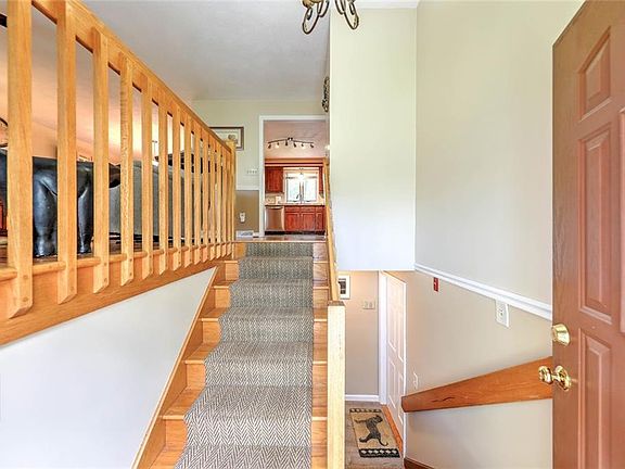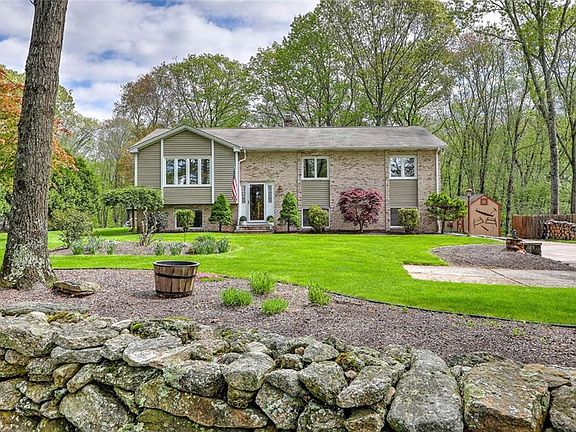 Highest & Best offers due by Monday, May 12th at 5pm. Don't miss this exceptional home in the Jaswell Farm neighborhood! This pristine raised ranch is set off the road with lovely landscaping and is situated in a serene, wooded setting in the heart of Smithfield. It offers a peaceful atmosphere while being conveniently close to shopping and dining. Key features include a gorgeous four-season room with scenic views where you will feel like you are amidst nature, and a gorgeous backyard. This 3-bed, 2.5-bath home boasts an updated kitchen, generous bedrooms, built-in closets, window treatments throughout, and an ensuite half bath in the primary bedroom. A large portion of the lower level is finished as a large family room that walks out to an expansive backyard and includes a laundry room with the second full bath. The backyard includes a screened gazebo with connected cable and electric, a large built-in firepit with a natural enclosure, a second outdoor fireplace, and a roomy shed. Additional amenities include an oversized garage with storage, and extremely efficient utilities, and generator ready electrical. Bonus: monthly yard fertilization is paid through Fall 2025. This very desirable property is close to the highway, shopping and dining, Shepard Park walking trails and Deerfield Park. Subject to sellers finalizing suitable housing.