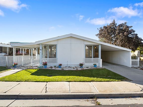 Charming Single-Level Manufactured Home on it's own land! You own your own land in this 55+ Alta View Estates Welcome to easy, low-maintenance living in the desirable 55+ community. LOW HOA fees! This spacious 1,850 sq ft home features 2 generously sized bedrooms, 2 bathrooms, and a large 2-car carport with extra storage space. Inside, you'll find a beautifully updated kitchen with abundant cabinetry and drawers for exceptional storage, a formal dining room with built-in china hutch, and an open-concept living area-perfect for hosting family and friends. Enjoy a peaceful, private backyard complete with lawn and vibrant garden space for flowers or vegetables that backs a park. Community perks abound, including a heated, covered in-ground pool, regular social events like bingo, book club, game nights, movies, pickleball, and more. HOA takes care of the yard work-so say goodbye to mowing! Pride of ownership shines throughout this well-maintained, self-managed community with low HOA fees.