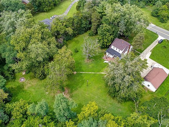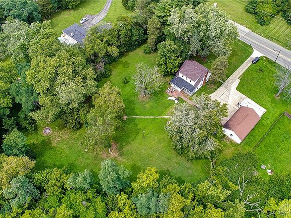 Are you looking for a big, country house with acreage and TWO garages, that is also minutes from everything you need? This is it! This beautiful house has loads of original charm and character but has had some good updates too! The property is almost 2 full acres and has an oversized driveway (including a concrete pad for RV's or trailers) to accompany the TWO oversized 2-car garages so you'll have plenty of parking for family and guests. You'll immediately notice the roomy front porch, that is perfect for sipping coffee in the morning or enjoying a porch swing. Inside is a huge entry with hardwood flooring that continues through several areas of the house. To the left of the entry is the light and bright living room that has a WBFP. The living room flows into an office that has built in bookshelves and windows that overlook the back yard. To the right of the entry is the dining room, which is open to the huge kitchen. The dining room has a beautiful built in corner cabinet and hardwood flooring. The kitchen is bright and airy with windows from every direction and has TONS of cabinet and cupboard space! Off the kitchen is a bright, beautiful room that could be a 2nd office, a playroom, or a sunroom, and also has a back door that leads to the back porch. There is a convenient half bath off the kitchen for guests as well. Upstairs you'll find three large bedrooms that all have hardwood flooring and ample closet space! In the basement, you'll find a large rec room area, an unfinished area for storage and laundry, and a finished room with a door and closet that could be a great 4th bedroom (no egress). In the back of the house is a brick patio, a firepit, and the private wooded lot that goes to the other side of the creek. Updates: roof (house only, not garages) - 2021, windows updated within the past 15 years. The house needs a little TLC on the outside, so bring your landscaping ideas! Agents - please see agent remarks for more info.