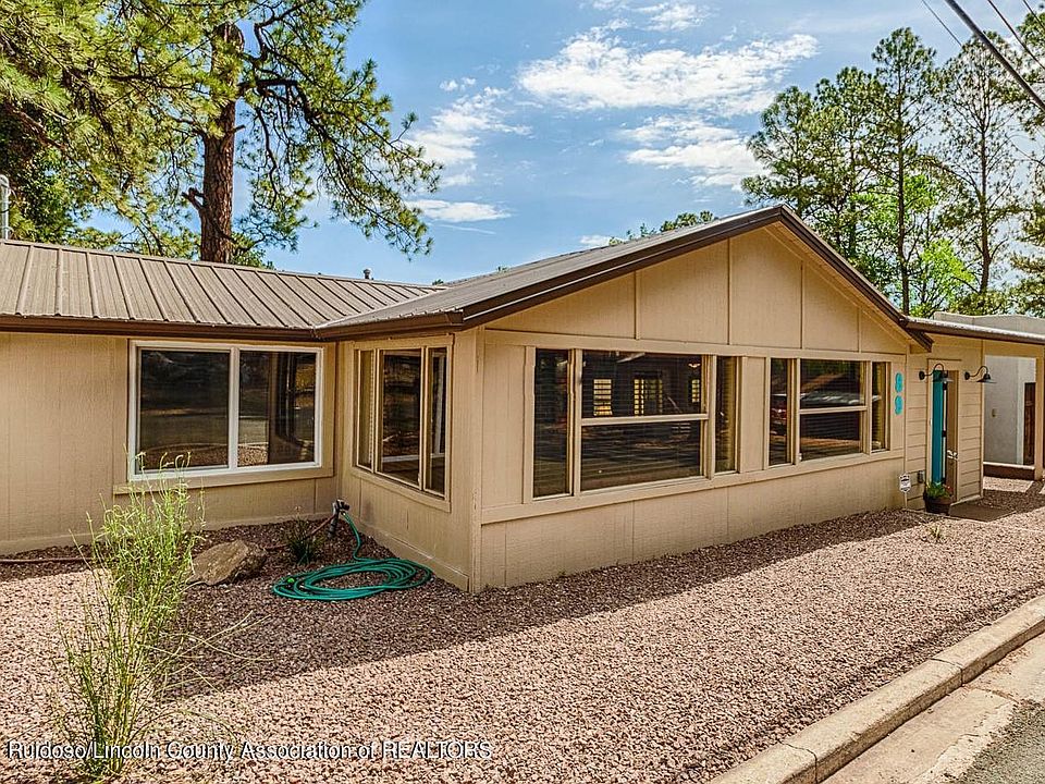 Prime Midtown home has been beautifully remodeled, decorated & operates as a successful turnkey vacation rental! 2018 rebuild incl: metal roof w/gutters, new cabinets/granite countertops, gas range, Central HVAC, covered carport, fenced backyard creation: that incl a spectacular LRG deck overlooking Sudderth & incl multiple seating areas, a BBQ grill and small putting green...a true a private oasis. Home features two living areas &, two eating areas, two bedrooms, darling bathroom. No carpet, (wood/tile only) indoor laundry & screen in back porch. Climate controlled owners closet. Zoned Commercial and residential with established rental history. Walking distance to shops, restaurants, Bars. Wingfield Park for festivals and all the perks living in the HEART of Ruidoso!