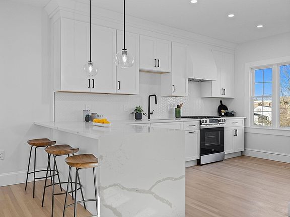 Welcome to this beautifully renovated home in the prime Dallin neighborhood! Upon entering, you step into the mudroom with custom cabinetry and coat hooks. The 1st floor features an open floor plan complete with a half bath, sunroom, living room and an eat-in kitchen. The kitchen is comprised of stainless steel appliances, white shaker cabinets and quartz countertops. The primary suite is also found on the first floor with a large en suite featuring a walk-in shower and a dual vanity. The 2nd floor features 3 bedrooms and a full bathroom. The living area extends into the lower level with a sunlit family room and a wet bar. Laundry and a full bath complete the lower level. 2 parking spots and a private yard round-off this incredible home. Nestled on a quiet street, minutes to Alewife, Cambridge, Boston, Routes 2/95, & Arlington’s shops & restaurants!