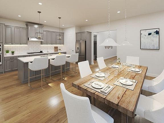 Move in for the holidays! INTERIOR FINISHES UPGRADED BY OUR DESIGN PROFESSIONALS! Modern townhome deluxe. The Steele's welcoming covered entry and two-story foyer reveal the spacious casual dining area and great room with tray ceiling and rear yard access. The well-equipped gourmet kitchen is enhanced by a large center island with breakfast bar, plenty of counter and cabinet space, and roomy pantry. The charming primary bedroom suite is complete with a stunning tray ceiling, sizable walk-in closet, and spa-like primary bath with dual-sink vanity, luxe glass-enclosed shower with seat and drying area, and private water closet. Secluded on the second floor, the generous secondary bedroom features a walk-in closet and shared full hall bath, and overlooks an enormous loft. Additional highlights include a convenient powder room and everyday entry, centrally located laundry, and ample additional storage. Enjoy tranquil setting with clubhouse and gym.