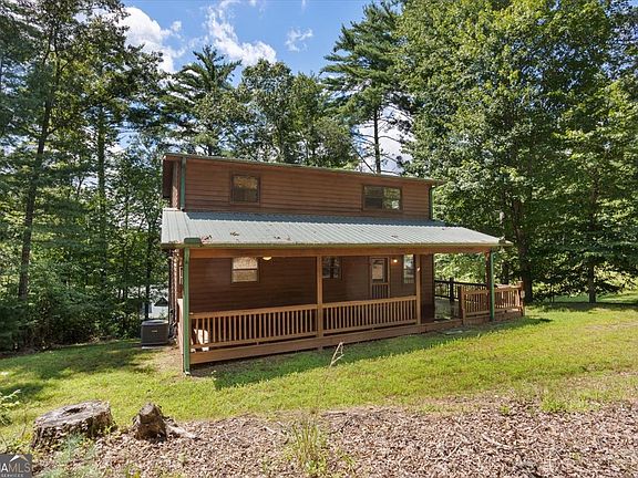 Experience mountain living at its finest in this exceptionally well-maintained 3-story, 3 BR/3 BA rustic home-perfect for full-time living, a second home, or a high-income VRBO/Airbnb rental. Each level offers a spacious bedroom and full bath, providing privacy and comfort for everyone. The great room boasts a stunning stone fireplace as its focal point, complemented by a vaulted ceiling that fills the space with warmth and charm. The country kitchen and adjoining dining area make entertaining effortless, while the loft offers versatile space for added sleeping quarters, a TV lounge, or a home office. Step outside to the expansive 3-sided wraparound deck and watch deer wander through your private 1.79-acre lot. Seasonal views of Lake Nottely add to the serene atmosphere, and the Nottely Recreation Area-with boat launches and walking trails-is just minutes away. Conveniently located near Blairsville, Blue Ridge, and Murphy, NC, this home's flexible layout can comfortably sleep 14+ guests, making it a rare find for both personal enjoyment and investment potential.