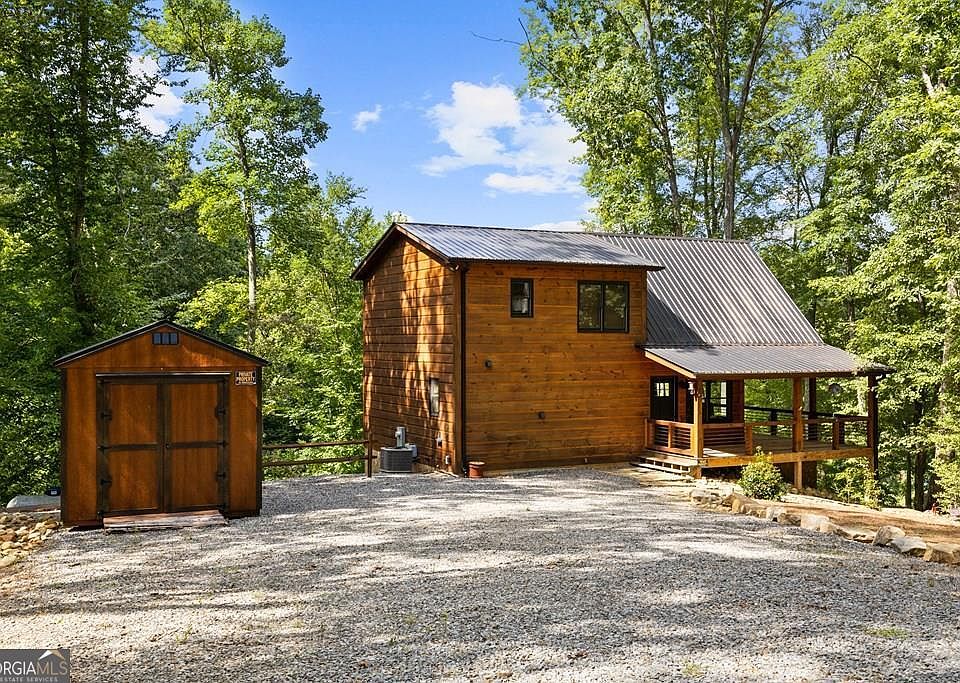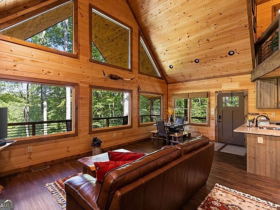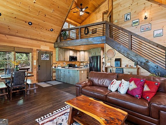 Welcome to "Cardinal Country" Cabin, a charming 3bedroom/three bath mountain retreat that comfortably sleeps seven. Nestled on 1 acre with an additional lot for a total of 1.95 acres, this property offers privacy, space and serene views overlooking a tranquil pond. Step inside to a bright, open kitchen featuring stainless steel appliances, granite countertops, and custom cabinetry. The inviting family room is anchored by a beautiful stacked stone fireplace-perfect for cozy evenings. A bedroom is conveniently located on each floor, offering privacy and flexibility, while the loft provides extra living space. Laundry is located on main level for ease and convenience. Being sold turnkey, this cabin is ready for you to enjoy from day one. Outdoors, you will find a hot tub, additional storage for your gear, county maintained roads for year round access and close proximity to both downtown Blue Ridge and Blairsville for shopping and dining. Whether seeking a full time spot, a weekend getaway, or investment opportunity this property is a definite "go see and fall in love".