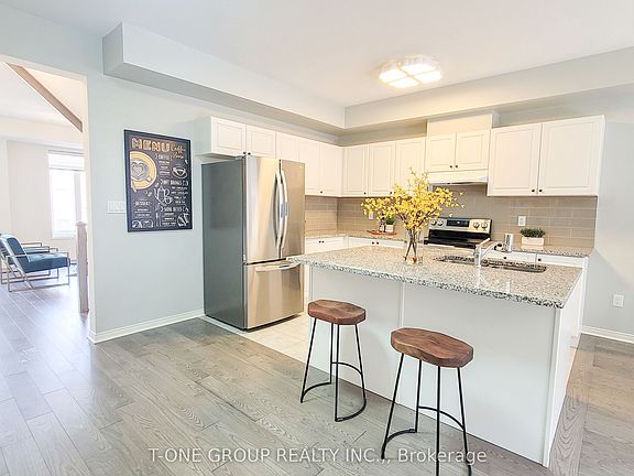 Absolutely Stunning 3+1 Bedroom Double Car Garage Townhouse Located In Prestigious Richmond Green Community. Spacious & Luxury Finishes Throughout. Media Rm Can Be Used As 4th Bdrm. Basement Bdrm W/ 3 Pc Ensuite & Large W/I Closet. Premium Hardwood Floors, Open Concept Kitchen W/ Granite Countertop & Island. Great Room W/O To Balcony, Primary Bdrm W/5Pcs Ensuite & Large Walk-In Closet, Main Floor Laundry, Direct Access To Garage. Mins To Costco, Highways, Richmond Green Park & Trails.