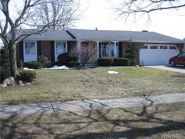 Ranch buyers dream home. Brick and cedar shake. This one has it all. Lr., formal dining rm, fam rm w/frpl, lrg kit w/sep eating area & natural wood cpbrds. Three bedrooms & two full baths (both baths are on 1st flr). Fenced yard, covered patio, nestled in Heritage Farms sub division. Loads of updates: garage door/windows/water tank/six panel drs/back up sump pump/fence/parquet flr in hall & dn rm. Gas start wbfp. brick ext. chimney. Best priced ranch in West Seneca. Try to duplicate this charmer for our asking price. Just change a few colors to make it your own. Quality were it counts!!