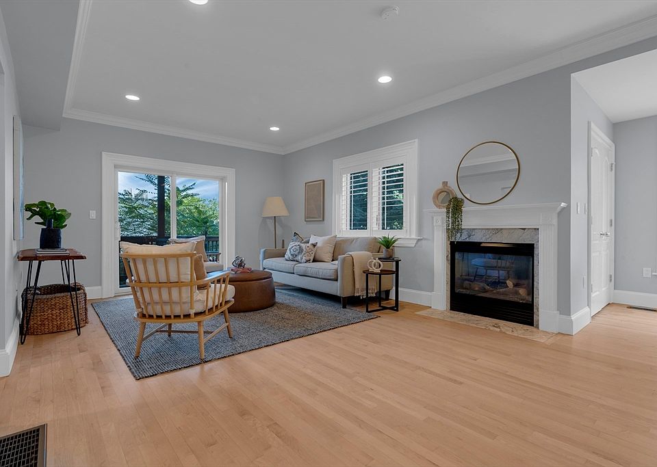 Brookline beauty! Unique opportunity to own a fantastic 3 bedroom 2 full bath with its own private entrance, parking, huge private deck and level yard(common) and is located in an exceptional Brookline neighborhood. (Aspinwall Hill). Spacious open living/dining area with fireplace, large windows which allow for an abundance of natural light and beautiful hardwood floors throughout. Cute breakfast bar is open through to the well appointed kitchen. Large primary bedroom with ensuite bath and impressive walk-in custom closet,king sized 2nd bedroom/laundry room on main floor, Lower level features a bonus media/entertainment/fitness room along with a third bedroom and direct access to the back yard. Amazing location on a beautiful tree-line street with close proximity to T,bus, Longwood Medical, parks, and of course all the great restaurants Brookline has to offer. Bar Vlaha, Stoked Pizza, Ivory Pearl to name a few. Fantastic 100% owner occupied association and large private storage area.