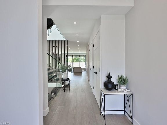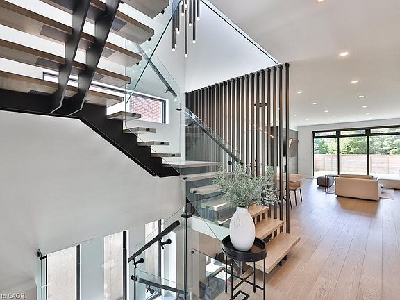An Unrivaled Expression of Luxury South of Lakeshore. Tucked away on a tranquil cul-de-sac just steps from the shimmering shores of the lake, this custom-built masterpiece embodies the essence of refined living.Over 5,500 sqft of beautifully curated space, every inch of this home has been thoughtfully designed to impress. 10ft ceilings on main, 9ft ceilings on 2nd and lower level. Wide planked flooring, solid interior doors, radiant floor heating under all tiled surfaces and the entire lower level floor.The layout is both elegant and functional, offering a secluded home office at the front of the house-perfect for moments of quiet focus. At the heart of the home, an open-concept living, dining, and kitchen area is tailor-made for effortless entertaining. The chefs kitchen is a vision of modern glamour ft Thermador integrated appliances, sleek quartz countertops and backsplash, a showstopping custom stone island with breakfast bar, and a striking built-in wine display.Upstairs, natural light pours through three skylights, illuminating the spacious bedrooms and spa-inspired bathrooms. The exquisite primary suite is a private retreat, with expansive windows, a custom walk-in dressing room, and a lavish six-piece ensuite. Unwind in the oversized soaker tub, or indulge in the dual showers with body jets-a sanctuary designed for total relaxation.The lower level is equally impressive, featuring a unique 400-square-foot gym beneath the excavated garage, a guest bedroom, and a sprawling recreation space bathed in natural light from above-grade windows. With a rough-in for a secondary kitchen or wet bar, the possibilities are endless whether hosting, relaxing, or creating a full in-law suite.Walk to the end of the street to the waterfront trails to Adamson Estate, Lakefront Promenade, Port Credit Yacht Club. Close to schools, the shops and restaurants of Port Credit, easy highway access or a short drive to Long Branch GO station.