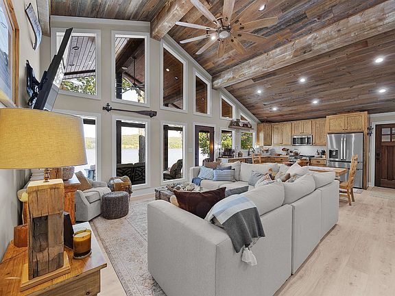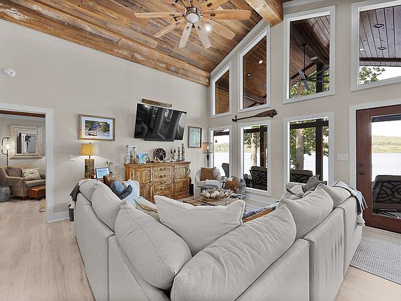 Nestled on the water's edge in Bear Creek on Pickwick Lake, this charming waterfront home was completely renovated in 2024 & offers the perfect blend of luxury & relaxation. This one-level home features 3 bedrooms & 3 full baths, plus a media room that could easily serve as a 4th bedroom. Two of the bedrooms function as master suites, proving ultimate comfort & privacy. The open-concept great room, kitchen & dining area boast LVP flooring, quartzite counter tops, stainless steel appliances, & a stunning barn wood ceiling. Enjoy outdoor living on the large screened-in-porch w/ a stone wood burning fire place, wet bar w/ refrigerator, icemaker, & wine cooler. Other amenities include a large covered front porch with panoramic views of the lake, detached 30 x 30 shop w/10 ft doors and a storm shelter. Situated on 1.19 acres with 330 ft of water frontage , your just steps away from a double stationary dock with sundeck, complete w/ a pontoon lift & ski boat lift. Sold mostly furnished!