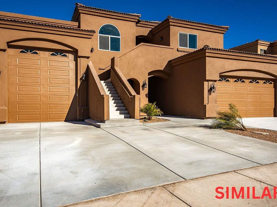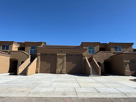 Elegant condominium situated in a picturesque, gated community featuring a swimming pool, spa, and BBQ area. This newly constructed residence adheres to the latest building codes, equipped with fire protection sprinklers and a four-layer system of synthetic stucco. The upper-level unit offers stunning views and comprises of three bedrooms, two bathrooms, and a thoughtfully designed open floor plan with numerous upgrades. A notable feature is the spacious 40-foot garage suitable for boats. The newly designed kitchen boasts upgraded appliances for optimal space efficiency, including a stainless-steel cooktop, built-in oven, refrigerator, dishwasher, and microwave. Custom-made cabinets with a soft-close mechanism, synthetic quartz countertops, and a generously designed master suite with a walk-in shower, dual vanity, and walk-in closet that contributes to the contemporary feel. Stylish lighting and finishes enhance the overall ambiance. Conveniently located within minutes of the Colorado River, Katherine Landing at Lake Mohave, restaurants, shopping centers, medical facilities, and Laughlin, Nevada's renowned casinos.
