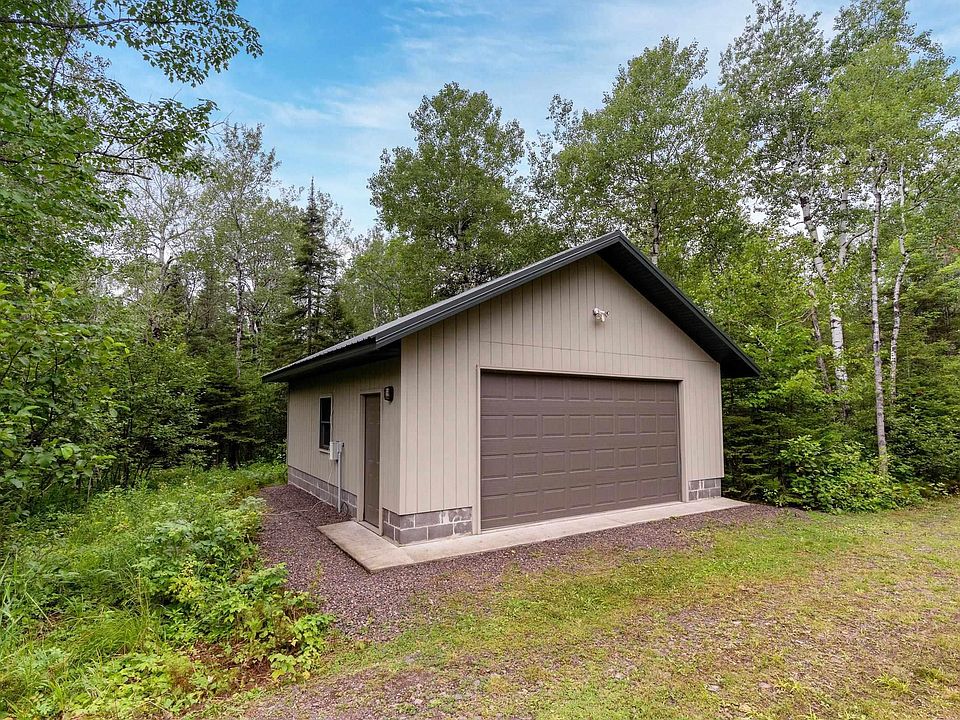 This ready made hide away waits for you to explore. Trails on the property meander thru a mixed forest. Cleared area with fire pit and fully finished 24x24 garage to get out of the weather or pull out your cot for an overnight. Includes hiking trails on 99 ac of shared land to the knife River.