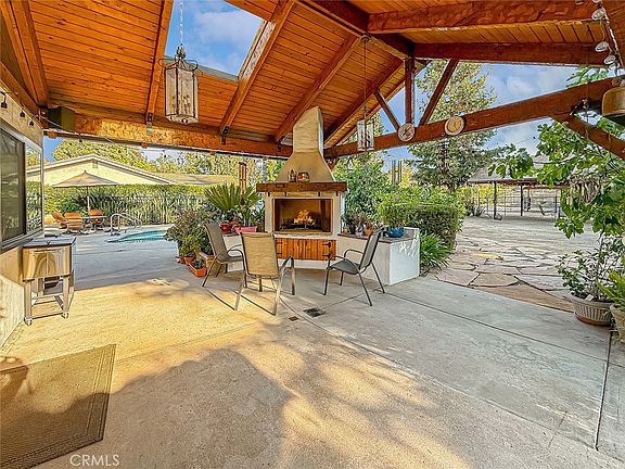 Outdoors, this property is truly a sanctuary. A sparkling pool and spa anchor the entertainer’s backyard, accompanied by a large wood-beam gazebo, A cover patio with a Santa Maria fireplace, Space for BBQ, and outdoor dining—perfect for gatherings day or night. Garden boxes and an abundance of fruit trees, including a variety of citrus, peaches, and figs, add charm and functionality to the lush, mature landscaping. All will enjoy the spacious play area, while multiple seating areas provide quiet spaces to relax.
