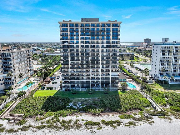 Paradise awaits you at this 11th floor, UPDATED, beachfront condo located at the Seawinds on Marco Island. This 2 bedroom, 2 bathroom condo is all about location! Enjoy DAILY sunsets from your balcony with direct western exposure. This condo building offers weekly rentals and this property is currently in a rental program. Property upgrades include tile flooring throughout, brand new kitchen with Quartz countertops, new cabinetry, and stainless steel appliances. The open kitchen concept offers daily views of the Gulf. Both bathrooms are updated with tile showers and granite countertops. All windows are hurricane rated and NEW impact resistant sliders are currently being installed. Laundry is in residence. Enjoy all the community amenities including a community heated pool and spa, extra storage locker, tennis/pickle ball courts, private beach access, and onsite management. This property location is on the south end of Marco Island just a short distance to the water and nearby many local restaurants and shops!