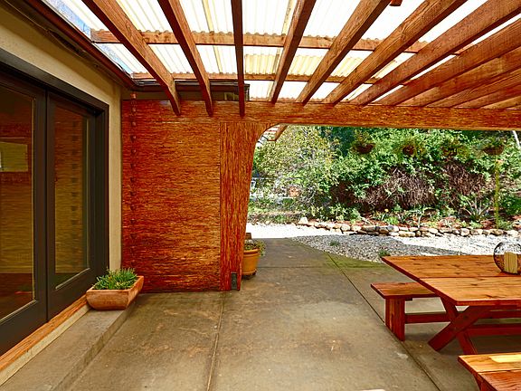 Be sure to step inside this private oasis. This bright and charming Mid-Century inspired traditional is an urban hideaway located in Pasadena's famed central Arroyo and adjacent to the Rose Bowl. This bright and airy three bedroom and two bathroom home with open floor plan has floor-to-ceiling windows, a working fireplace, refinished hardwood floors, a new kitchen and bathroom, dining room, laundry room, solar power and 2-car garage. In addition, the huge private master suite leads out to a spectacular patio, organic garden, and terraced hillside. The drought-tolerant garden is landscaped with stone walls and winding flagstone pathways with fragrant lavender and blooming succulents, all conducive to the temperate Southern California climate. The stunning Mid-Century inspired pergola was custom-designed for the home by internationally acclaimed furniture designer Ladislav Czernek and makes this home perfect for the indoor/outdoor lifestyle.