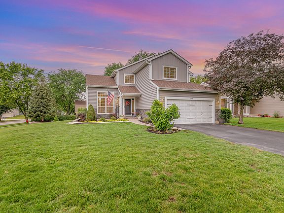 This is the one you've been waiting for! Large beautiful 2-story home in highly sought after Tallgrass! This home has so much to offer. As you step inside, you'll be greeted by soaring vaulted ceilings and gleaming hardwood floors that flow seamlessly throughout the open floor plan. Enjoy cooking meals in your updated kitchen with quartz countertops and the warm atmosphere created by the fireplace in the family room. The primary bedroom suite features a cozy sitting room, which can be transformed into a fifth bedroom if desired. The luxurious bathroom is equipped with a whirlpool tub and a standup shower. Additional highlights include a full basement with ample storage space, built-in shelving and a drywalled hobby room. The new siding, installed in the fall of 2024, enhances the home's exterior appeal, gutter guards, and the Generac whole house generator offers peace of mind with its transferable warranty. The exterior is also enhanced by strategically placed outdoor lights equipped with timers or dusk-to-dawn bulbs. The fully drywalled and insulated 2-car garage, sporting a 3-year-old Epoxy floor, provides both protection and style. Relax and entertain in the delightful 3-season room that opens onto the patio, perfect for enjoying tranquil evenings or lively gatherings. A large backyard shed offers even more storage solutions. This home is ready for you to move in and call home! #LOVEWHEREYOULIVE