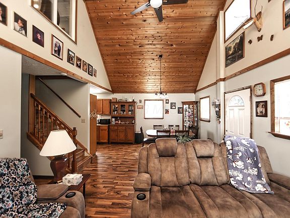 Lovely Apple Valley home that is perfect for year round or part time lake living, this home offers 3 bedrooms and 2 full baths, vaulted ceiling living room with lots of natural light, adjoining dining area, step saver kitchen that includes the range and refrigerator, convenient main level laundry, primary bedroom suite with private bath and walk in closet, bonus loft space, wrap around decking, natural gas heat and central air, whole house generator, detached 2 car garage, great location, priced to sell at 225,000.