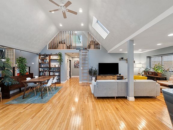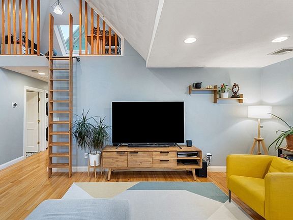 One of a kind 3+ Bedroom, 1.5 Bathroom home in Revere's Beachmont neighborhood. Set within the historic former Saint Paul's Episcopal Church, this recently renovated and newly expanded home offers soaring cathedral ceilings, dramatic skylights, and exquisite architectural details that provide an abundance of natural light throughout. The main level features gleaming hardwood floors, a brand new kitchen, updated appliances and granite countertops. A versatile loft space provides not only room for a study but also storage. There is one bedroom off the living room and a full bathroom with a soaking tub and pretty tiled floor. The primary bedroom and third bedroom is just off another den, currently being used as a playroom. The large primary has tons of closet space. Walk up the modern, newly built staircase to an office space and an additional lofted guest room. In unit W/D and mini splits throughout. Steps from MBTA Blue Line and and walking distance to Short Beach, local cafes and more!