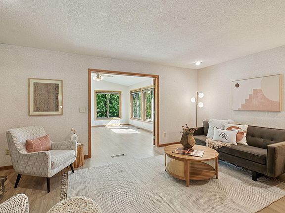 Tranquil Cul-de-Sac Living on an Expansive Lot! Discover your private oasis at the end of a quiet cul-de-sac, perfectly situated on an oversized lot next to a wide-open city field. This meticulously maintained home combines serene privacy with unparalleled convenience. Step inside to a sunny and bright interior, where modern updates create a fresh and inviting atmosphere. Recent upgrades include a newer roof, siding, and windows, ensuring peace of mind for years to come. You'll love the new luxury vinyl plank flooring and brand-new carpet that flows throughout the home. The main level features an inviting galley kitchen with a dining area, a light-filled sunroom perfect for morning coffee, and multiple gathering spaces ideal for both relaxing and entertaining. The thoughtful layout offers fantastic flexibility with three spacious bedrooms on the upper level and two additional bedrooms on the lower level, providing ample space for family, guests, or a home office. The outdoor living spaces are truly stunning. A large deck overlooks an expansive patio and a beautifully landscaped yard, complete with mature trees and lush foliage. This private retreat is perfect for summer barbecues, quiet evenings, or simply enjoying the natural surroundings. This move-in-ready home also includes modern conveniences like a garage with an EV charger, an extra parking pad for additional vehicles, and a handsome stamped asphalt driveway. Located in a spectacular and convenient area, you are just moments away from shops, restaurants, services, parks, scenic trails, and schools. Easy access to major highways makes commuting a breeze. Don't miss this rare opportunity to own a beautifully updated home in an unbeatable location.
