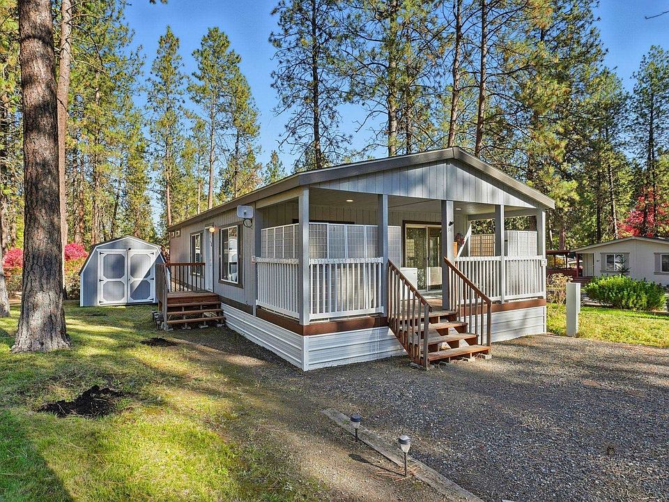Welcome to Mullen Terrace — a Hidden Gem! Nestled in a peaceful, rural setting near the South Hill, Mullen Terrace Manufactured Home Community offers the perfect blend of privacy and convenience. Surrounded by mature trees and natural beauty, this community provides a quiet retreat just minutes from shopping and downtown Spokane. This home features an open and spacious layout with 2 bedrooms and 2 bathrooms. Enjoy the bright living and dining area, a stylish kitchen with a granite-topped island, and plush carpeted bedrooms with walk-in closets. A large utility room includes exterior access for added convenience. Step outside to a nice-sized deck—perfect for relaxing—and take advantage of ample surface parking. The community also offers secured RV storage, plus internet and cable availability. Don’t miss your chance to own a new home in this beautiful, tucked-away community!