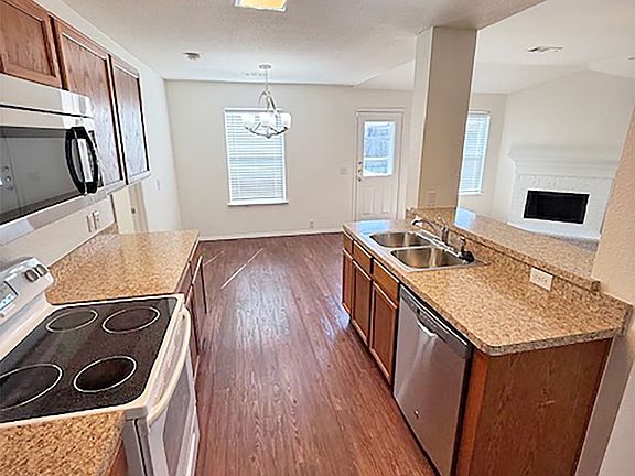 Cozy wood burning fireplaceOpen floor planNew paintNew electric rangeNew flooringNew countertops