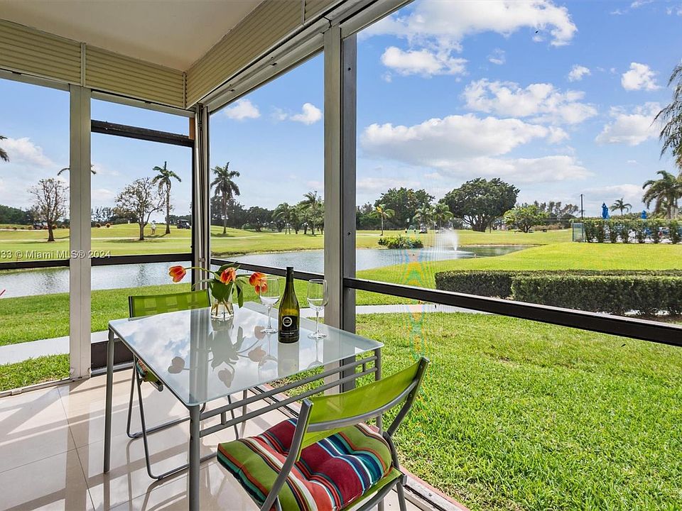 Ground floor SW corner unit at its Best, with unlimited PGA golf views and water views ready for YOU! Style & sophistication describe best this 1bdrm 1 ½ baths condo. Sold turnkey (except wall art) featuring highend furniture including an impressive built-in TV console. Newer bathroom with elegant glass walled step down shower. Rarely available, a washer & dryer closet also makes this home so unique. High impact windows&doors for energy savings & peace of mind. Just steps away from the pool area, the Florida dream is on. Unpaid Rec lease. Located in Hollybrook Golf & Tennis, an active 55+ community where the Golf is FREE (except cart fees). Community offers 2 Golf courses - PGA & Par 3, heated pools w/Bar-B-Q facility, tennis & pickleball courts, theater, restaurant & much more.