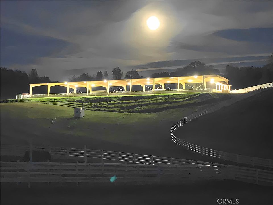 Welcome to 8900 Wight Way, a rare equestrian retreat designed for horse enthusiasts, ranchers, and those seeking versatile country living. Set on expansive acreage with multiple wells, pastures, and arenas, this property combines functional infrastructure with unique amenities for events, training, and comfortable living. The main residence is a charming 3-bedroom, 2-bath home with a large, fenced yard, updated deck with storage, and a huge washer/dryer set-up perfect for horse blankets. Additional features include a heat pump system, mini splits, and a metal roof for lasting durability. Equestrian facilities are extensive and thoughtfully designed: a covered, all-steel, 100x235 Olympic-sized arena with professional-grade footing, LED lighting, full sound and judging system, septic hookup, and booths for spectators, and stunning views. Riders also enjoy a 40x80 meter open arena, gravel pad for 80 ft round pens, and miles of trail systems on and around the property. Multiple paddocks (up to 14), mare and gelding pastures, and double-fenced walkways with water access provide excellent care and separation for horses. A wood barn with stalls, birthing/recovery stalls, hay storage, tack areas, wash rack with hot/cold water, and comfort flooring complete the setup. The ranch is equally well-equipped with a 50x70 shop (built 2023) featuring solar capability, LED lighting, multiple roll-up doors, a chain hoist, and ample 50/30-amp service. Additional highlights include a smokehouse, butcher shop with bathroom, year-round pond, leach fields, and 4-rail fencing without barbed wire. Parking is abundant, with multiple gated entrances, long-term parking near the shop, and an easement for larger vehicles. Whether you’re raising horses, hosting events, or running a ranching operation, 8900 Wight Way is built to handle it all. The property has been home to cattle, equestrian shows, 4-H, and Dressage Society events, and even comes with a 1949 tractor, electrical Solectrac PF4000 tractor with attachments, and Cavaletti equipment for training. With Adobe Creek Reservoir nearby and a strong community presence, this property offers unmatched opportunity and flexibility. Horses thrive here—the pastures, fencing, and layout make for an inviting, calm environment where they’ll come right up to greet you. 8900 Wight Way – a one-of-a-kind equestrian estate blending ranching history, modern upgrades, and event-ready amenities.
