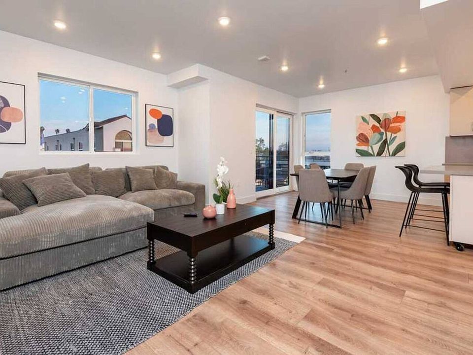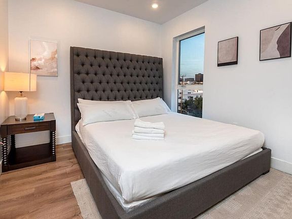 Welcome to this beautifully designed 2-bedroom, 2-bathroom condo, nestled in the vibrant heart of Koreatown. This modern and spacious apartment is perfect for families, friends, or small groups, comfortably accommodating up to 6 guests. It's the ideal home base for those looking to experience luxury and convenience in one of LA's most exciting neighborhoods. Step into an inviting, open-concept living area that exudes both comfort and elegance. The spacious living room features contemporary furnishings and cozy seating, perfect for relaxing after a day of exploring the city. High-speed Wi-Fi is available throughout the apartment, ensuring you stay connected and entertained during your stay. The master bedroom serves as a serene escape, featuring a plush queen-sized bed with high-quality linens to guarantee a restful night's sleep. The second bedroom offers two additional queen beds, thoughtfully designed to provide comfort and ample space for extra guests. For those who love to cook or prefer the comforts of home-cooked meals, the fully equipped kitchen has it all. With modern appliances, plenty of counter space, and all the essentials, you'll have everything you need to prepare your favorite meals. Whether it's brewing a morning coffee or creating a gourmet dinner, the kitchen combines functionality with style. One of the apartment's standout features is the private roof deck, offering breathtaking views of the city. This outdoor retreat is furnished with stylish seating, making it the perfect place to enjoy your morning coffee, unwind with a book, or host a small gathering with friends and family. The roof deck adds an extra touch of luxury to your stay. Additional conveniences include a washer and dryer, making it easy to refresh your clothes during longer stays or after a day of adventures. Free parking is provided, giving you hassle-free access to your vehicle whenever needed. Situated in Koreatown, you'll be just steps away from the area's thriving dining, shopping, and entertainment scene. From trendy restaurants and unique shops to vibrant nightlife, everything you need is within reach. Koreatown offers a rich cultural experience, where you'll find something for everyone to enjoy. No smoking, no pets, and no parties or events are allowed. Check-in is at 4 PM, and check-out is at 10 AM. Early check-in and late check-out may be available upon request. The property is professionally cleaned and sanitized before your arrival, ensuring a safe and comfortable environment.