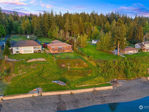 Experience the joys of waterfront living with breathtaking views of Henderson Inlet, Harstine Island & the Olympic Mtns AND 76’ of low bank shoreline w/concrete bulkhead! The 3620 SF Rambler w/DL Basement offers an open concept design-perfect for entertaining! Step out to the expansive deck & witness stunning sunsets while enjoying freshly gathered clams & oysters from your pristine, pebble beach. Primary Suite, Hm Office & 2nd BR & Bath also on Main. Downstairs, the Rec Rm awaits w/blt-in bar & slider to covered patio. Wine cellar, Lg Extra Finished Rm (guests/hobbies?) 3/4 BA & more! 3-Car Garage, Workshop & Carport offer ample space to park, store & build. All of this nestled on a generous .94-acre lot, just minutes from Zittel’s Marina!
