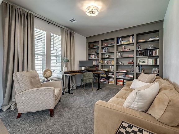 This stunning 2022 home in Woodland Park has it all! With 4 bedrooms, 3 full baths, 1 half bath, bonus room, a 4-car garage, and an office on over half an acre, it’s a dream come true! When you enter the home, you're greeted with a dedicated office with built ins! The main living area features wood flooring, a gas fireplace, tall ceilings, and gorgeous windows that let in natural light and offer views of the spacious backyard with wrought iron fencing. The kitchen is perfect for entertaining, with a gas cooktop, built-in oven and microwave, stainless steel appliances, a walk-in pantry, and a large center island. The master suite includes a full bath, dual vanities, a makeup counter, a walk-in shower, a soaker tub, and a walk-in closet! One secondary bedroom is located downstairs, along with a "pocket office" area near the garage.Upstairs includes two secondary bedrooms, a bathroom, and a bonus room. The home features a covered back patio, a fireplace, a storm shelter in the garage, a sprinkler system, and security cameras. It's conveniently close to the neighborhood pool and recreational facility. Arcadia address and Edmond schools!