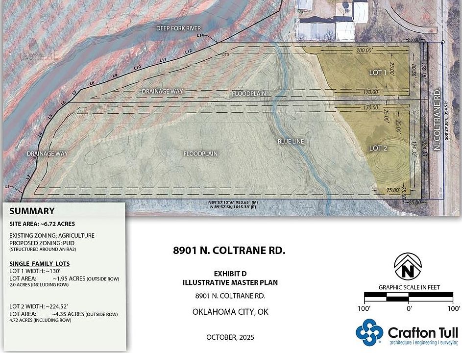 Approximately 2 acres in Oakdale Schools to build your new home! The property boasts mature trees, framed by the river, and quick access to I-35. PUD 2098 zoning approved and awaiting Lot Split Approval from OKC. This listing is for Tract 1; see pictures for approx. layout of Tract 1 and Tract 2. Both Tracts will share one driveway off of Coltrane Rd. ***Boundary lines in pictures are approximate and not final. Final boundary lines will be determined at lot split approval.
