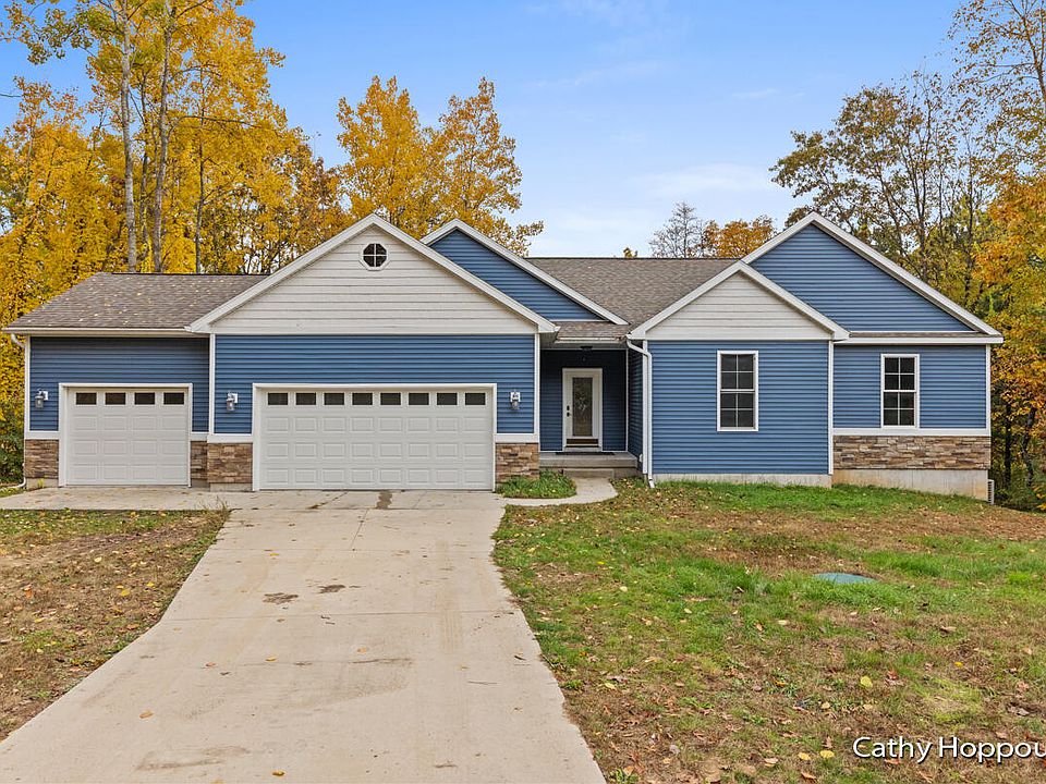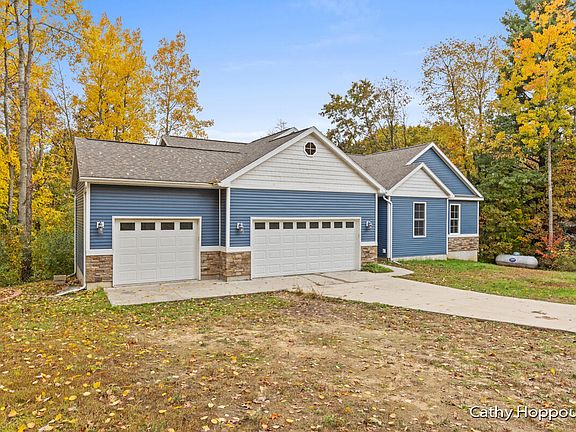 You will fall in love when you step inside this newer ranch, nestled on 2.247 acres on private Ranney Lake. Open and airy floor plan takes in views from every window. Extra large kitchen with island is a cook's dream! Main floor master suite and large family room in walk out lower level. If you love privacy, water and wildlife - this is the place for you to call home!