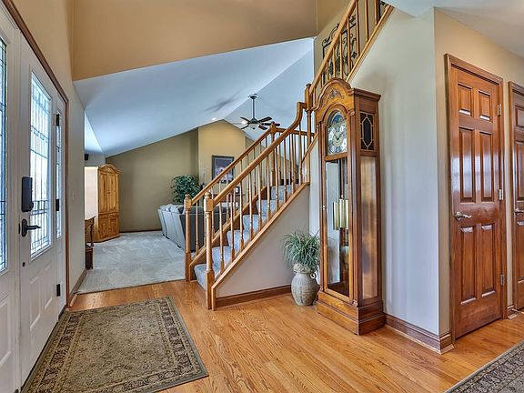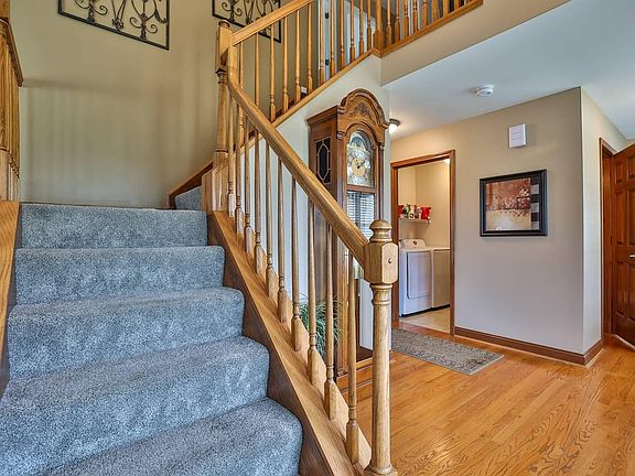 a 32x16 deck with treeline view that is terrific for spring/summer/fall entertaining. Unfinished basement has 8'6 foundation walls. HVAC replaced 2023. Oversized garage! Basement has full bath rough-in,